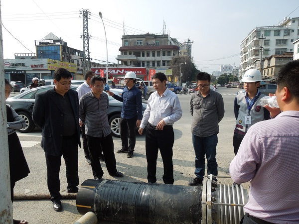 2017年3月23至24日,為配合洞湖橋(國道G324福廈線100K+403)拓寬改造工程,曠遠(yuǎn)能源股份有限公司精心籌備,在莆田市宏盛市政工程有限公司的大力協(xié)助下,對(duì)橋上Dn400燃?xì)夤艿肋M(jìn)行了改造,改鋼管掛橋?yàn)?span>PE管定向穿越。為此,曠遠(yuǎn)能源成立了以姜升科總裁為組長的領(lǐng)導(dǎo)小組,跟進(jìn)及落實(shí)改造工程各項(xiàng)工作。