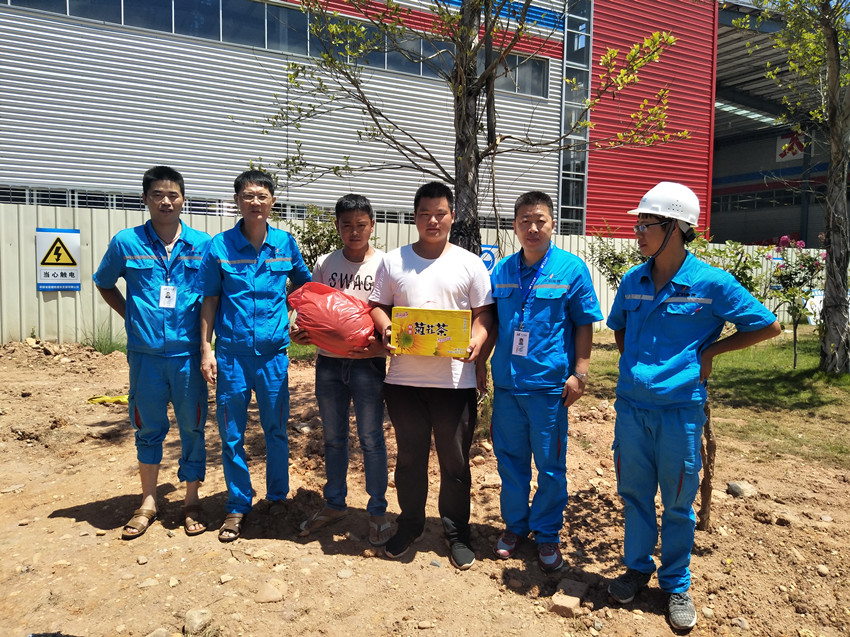 7月18日,上杭曠遠(yuǎn)能源有限公司總經(jīng)理姚力爭、副總經(jīng)理郭明亮、工程部副經(jīng)理李寧森一行對(duì)宏盛市政上杭項(xiàng)目部施工班組人員進(jìn)行實(shí)地高溫慰問工作,上杭曠遠(yuǎn)能源有限公司堅(jiān)持以人為本,抓好生產(chǎn)運(yùn)行的同時(shí),高度重視員工勞動(dòng)保護(hù)工作。在盛夏高溫季節(jié),公司領(lǐng)導(dǎo)深入基層班組和施工現(xiàn)場,送防暑降溫水果及飲料,慰問冒高溫作業(yè)的施工班組人員,他們奮戰(zhàn)在工程建設(shè)的第一線,搶抓施工黃金季,確保各項(xiàng)工程的安全、優(yōu)質(zhì)..
